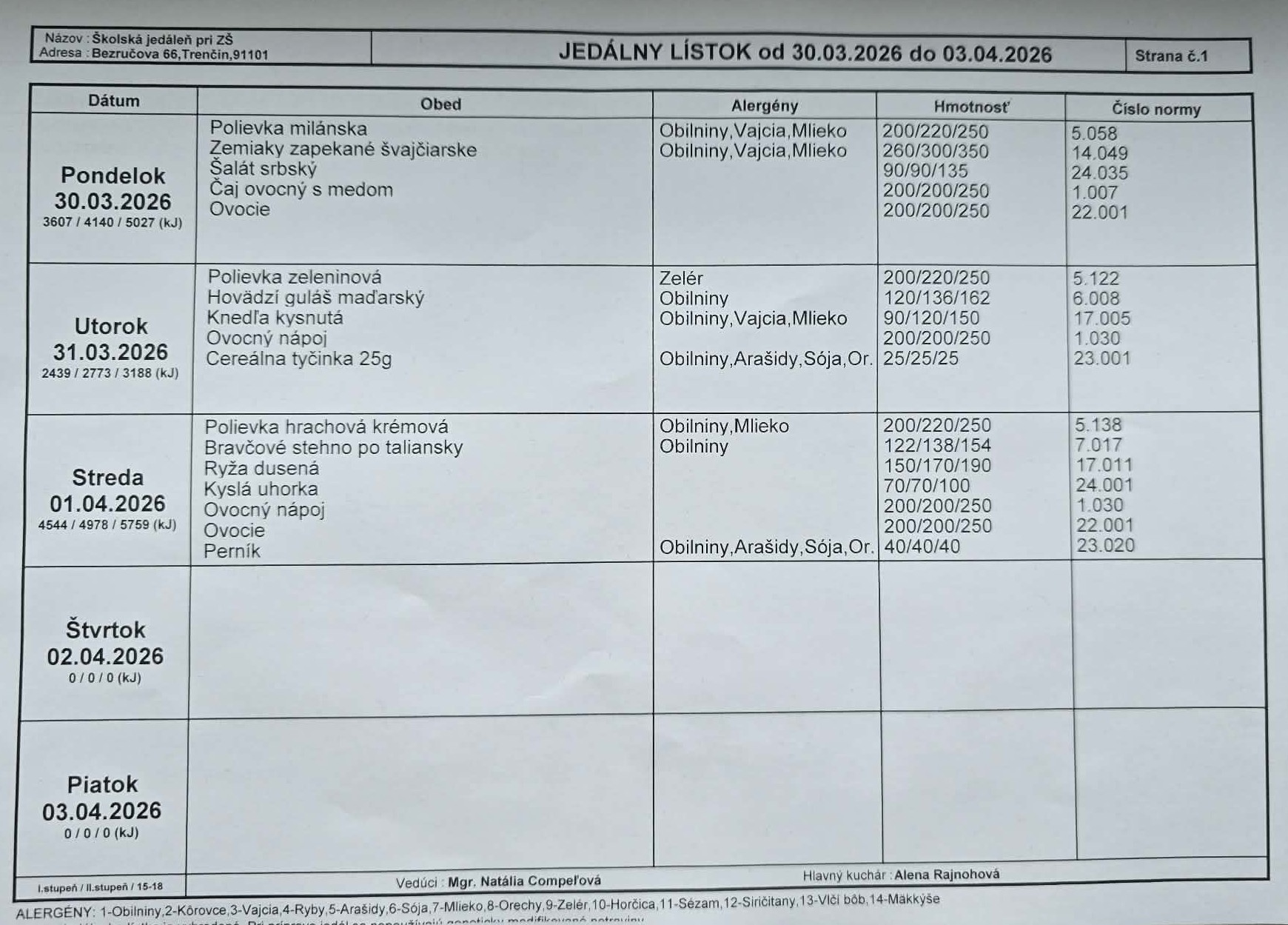 individuálne pri zápise. |